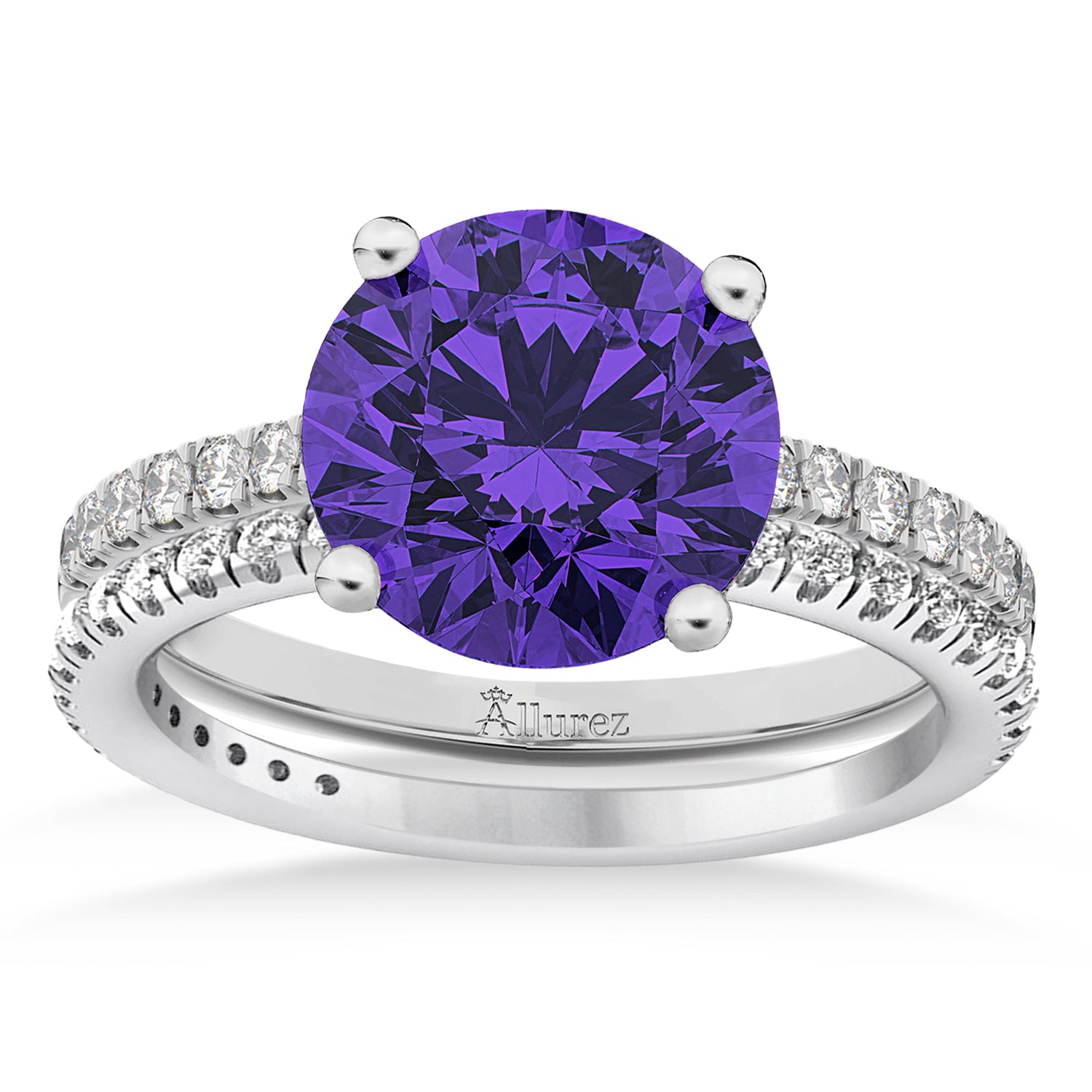 Tanzanite & Diamond Round-Set Semi-Eternity Bridal Set 14k White Gold