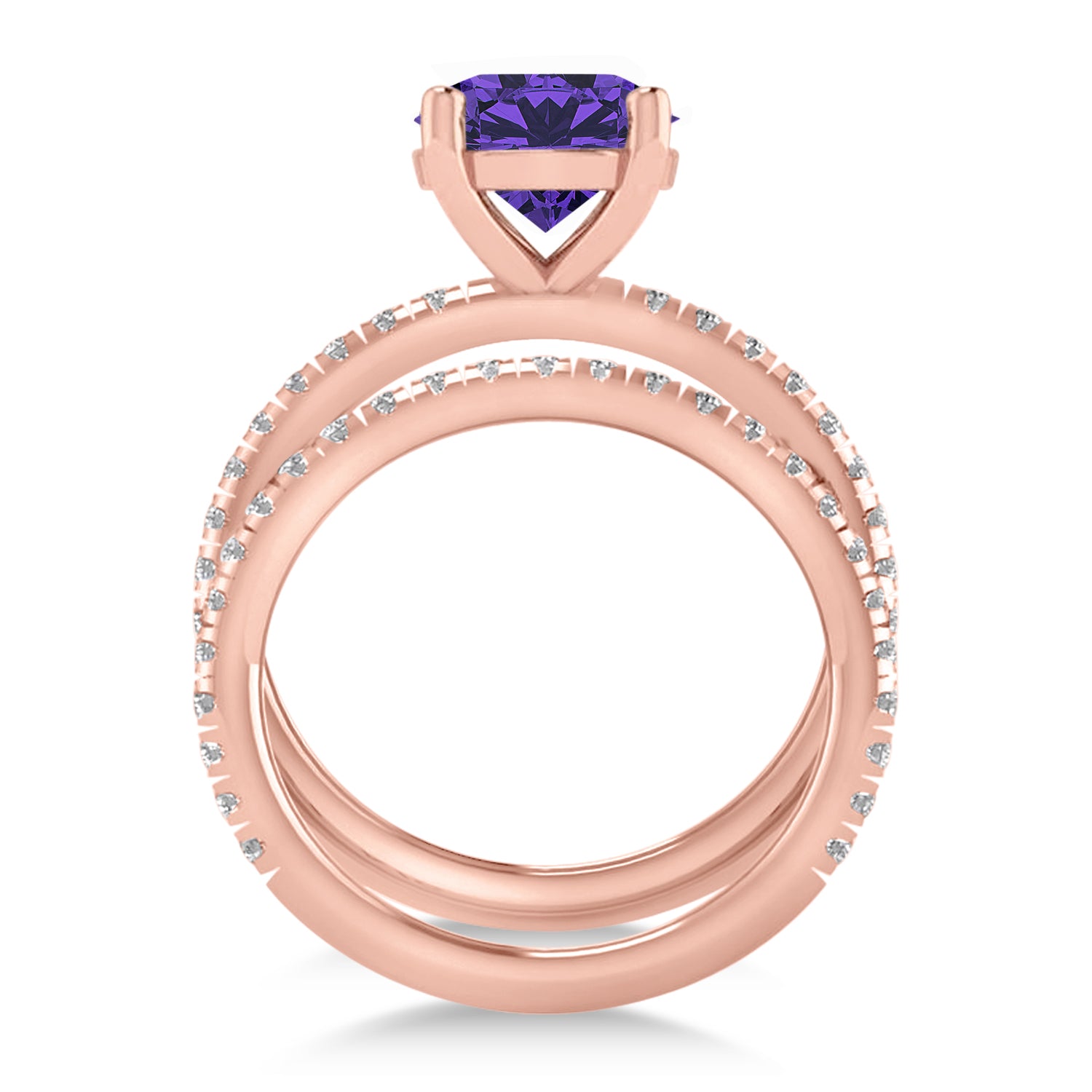 Tanzanite & Diamond Round-Set Semi-Eternity Bridal Set 18k Rose Gold (