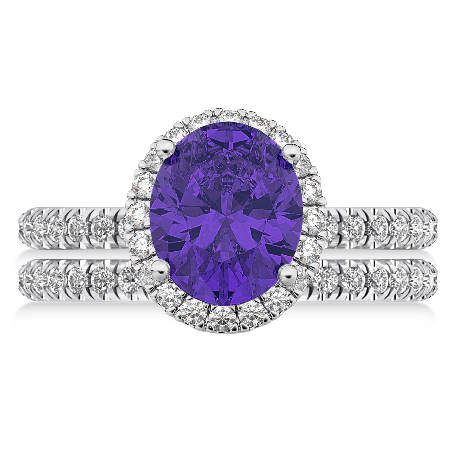 Tanzanite & Diamonds Oval-Cut Halo Bridal Set 14K White Gold (3.93ct)
