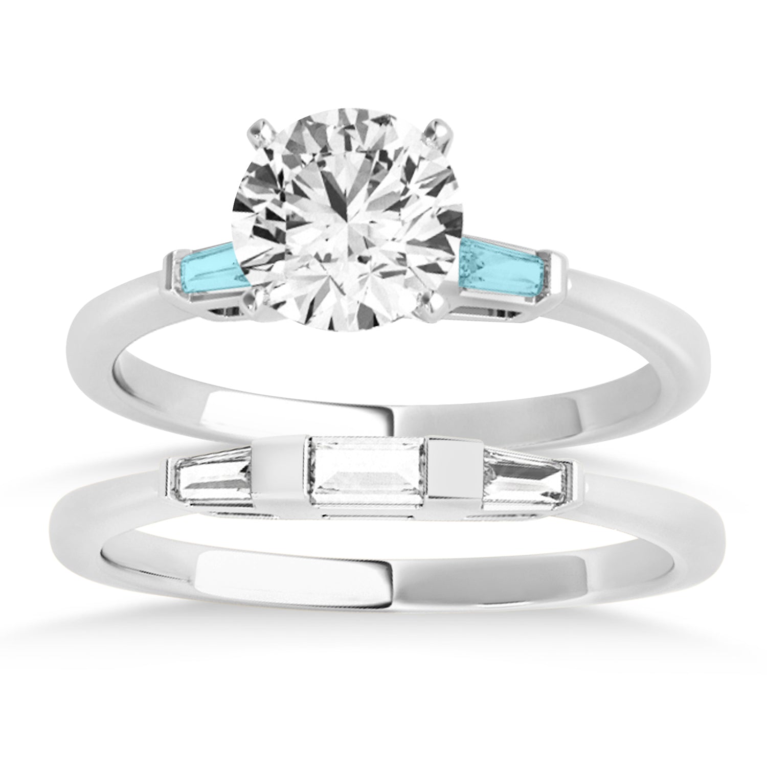 Tapered Baguette 3-Stone Aquamarine Bridal Set 14k White Gold (0.30ct)