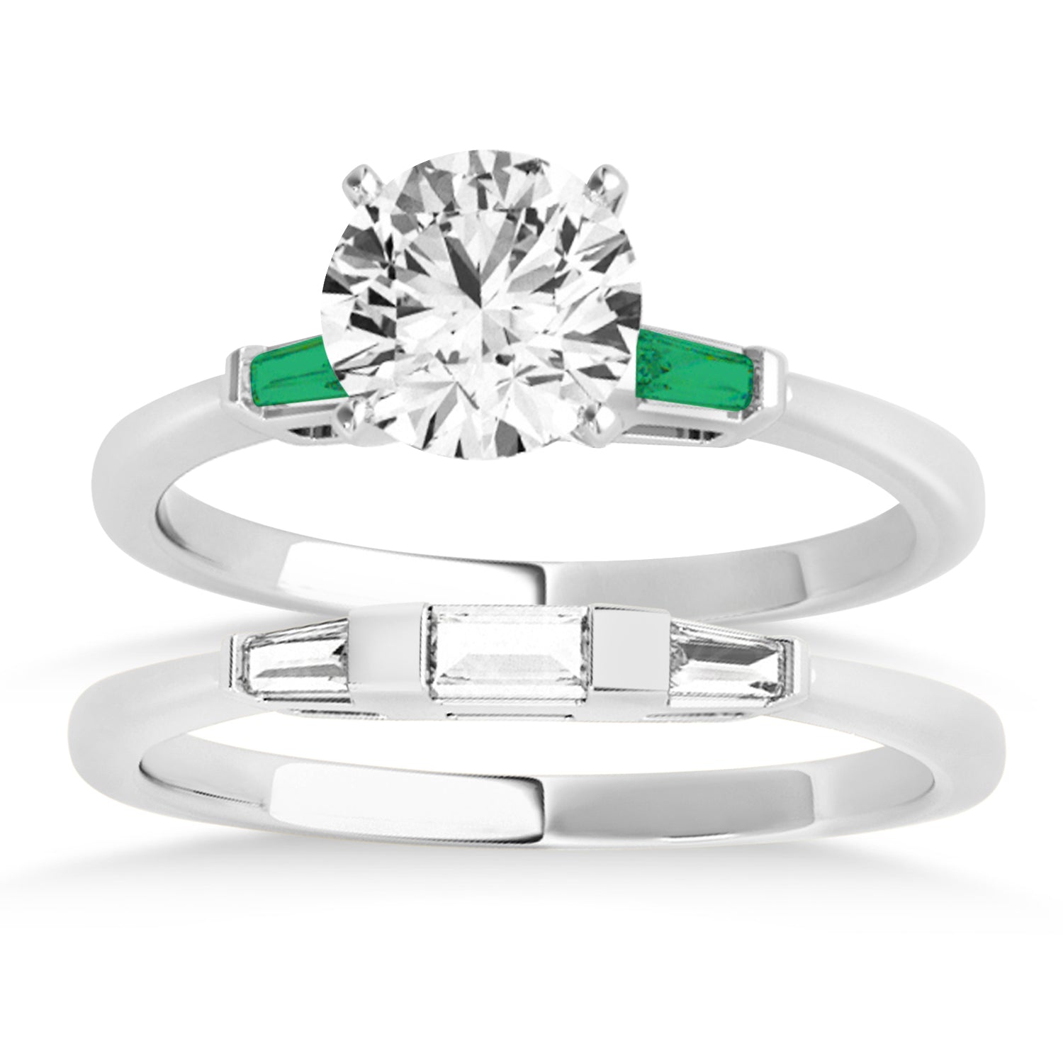 Tapered Baguette 3-Stone Emerald Bridal Set 18k White Gold (0.30ct)