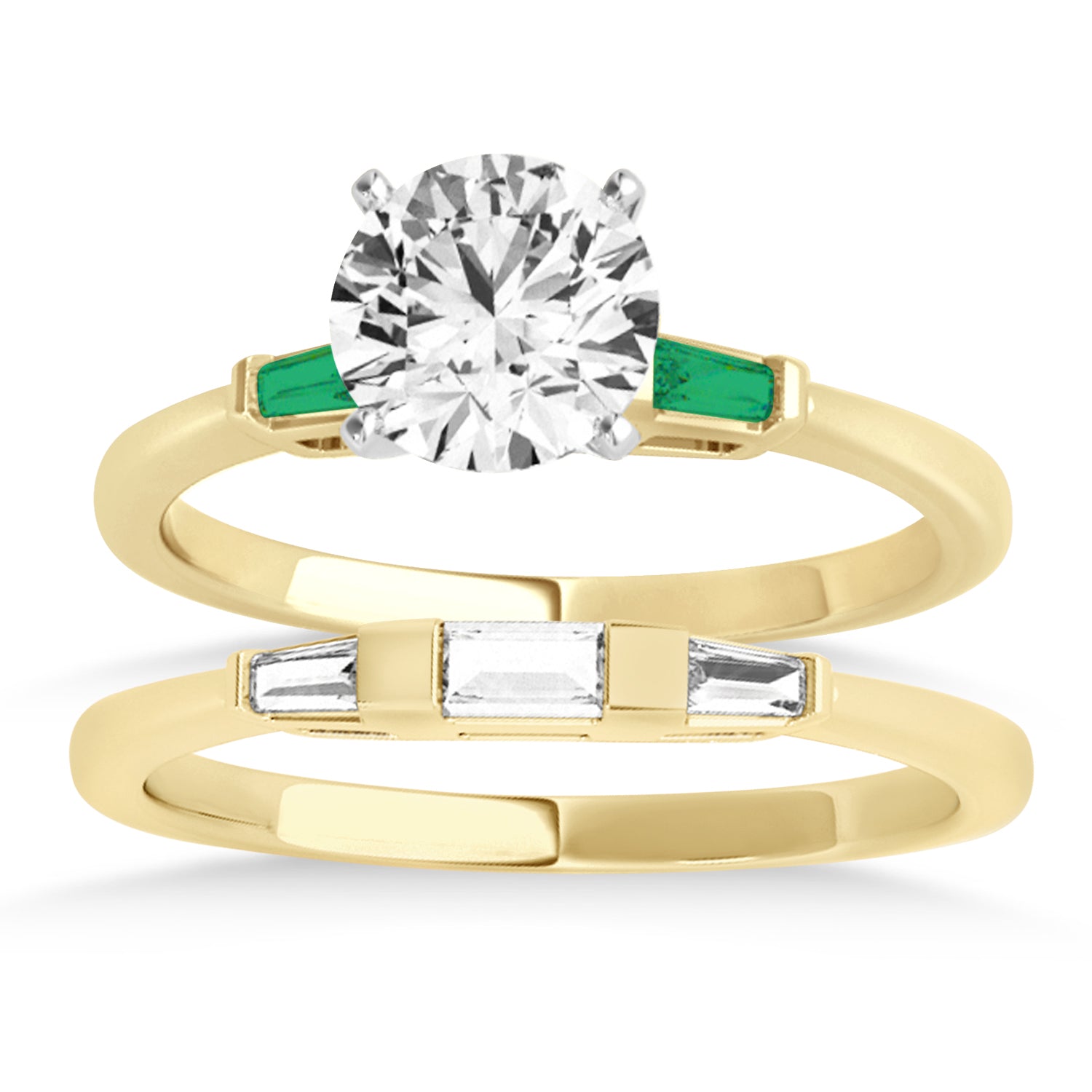 Tapered Baguette 3-Stone Emerald Bridal Set 18k Yellow Gold (0.30ct)
