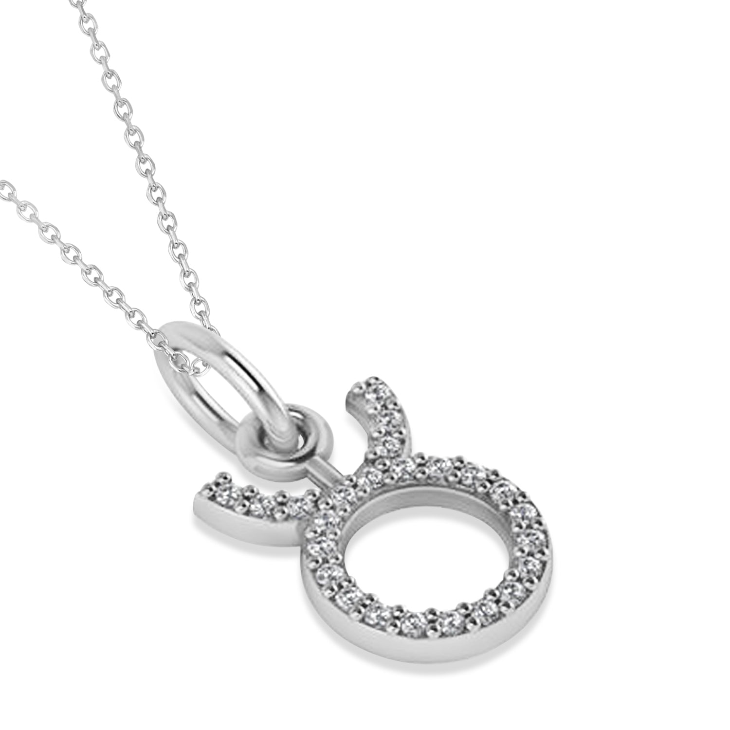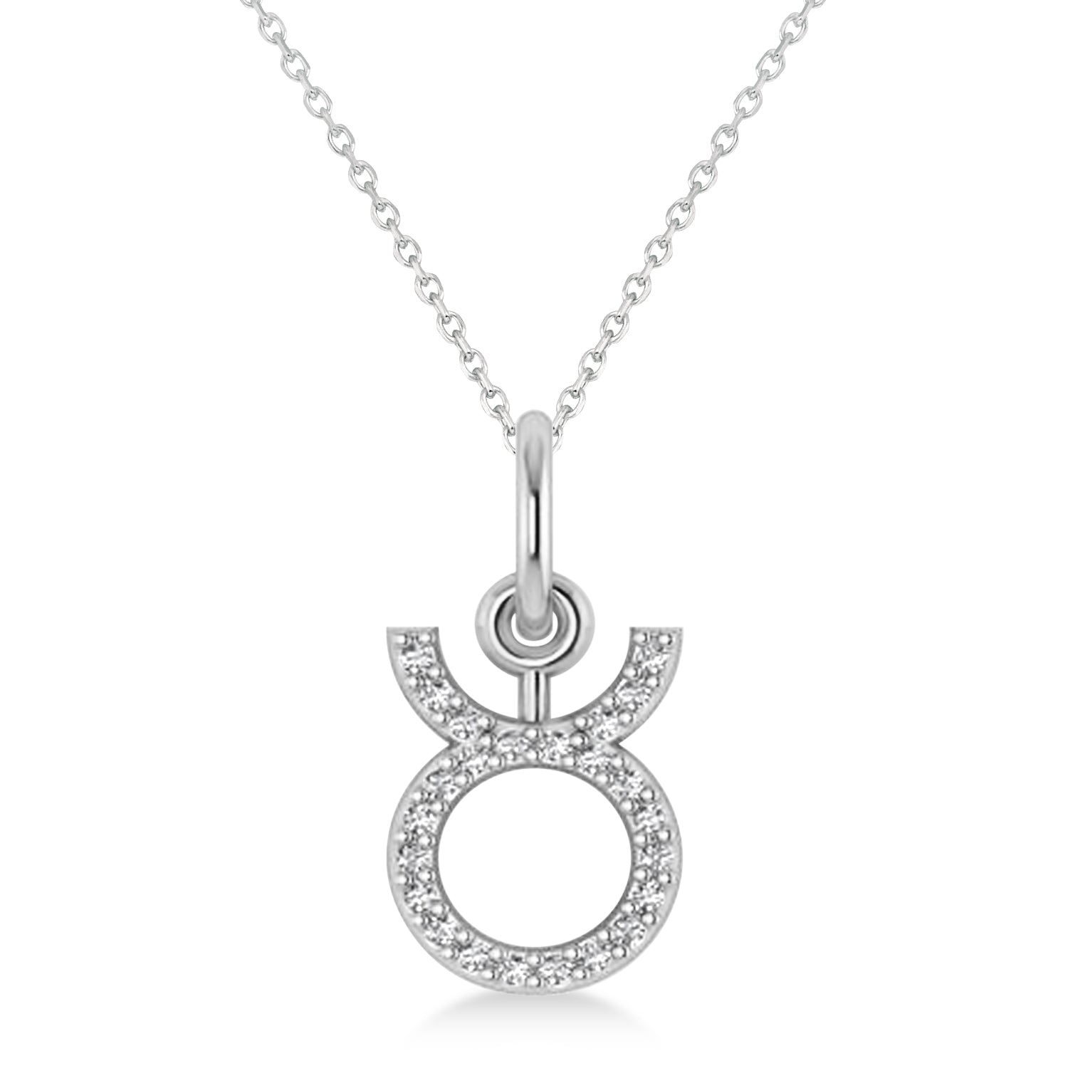 Taurus Zodiac Diamond Pendant Necklace 14k White Gold (0.12ct)