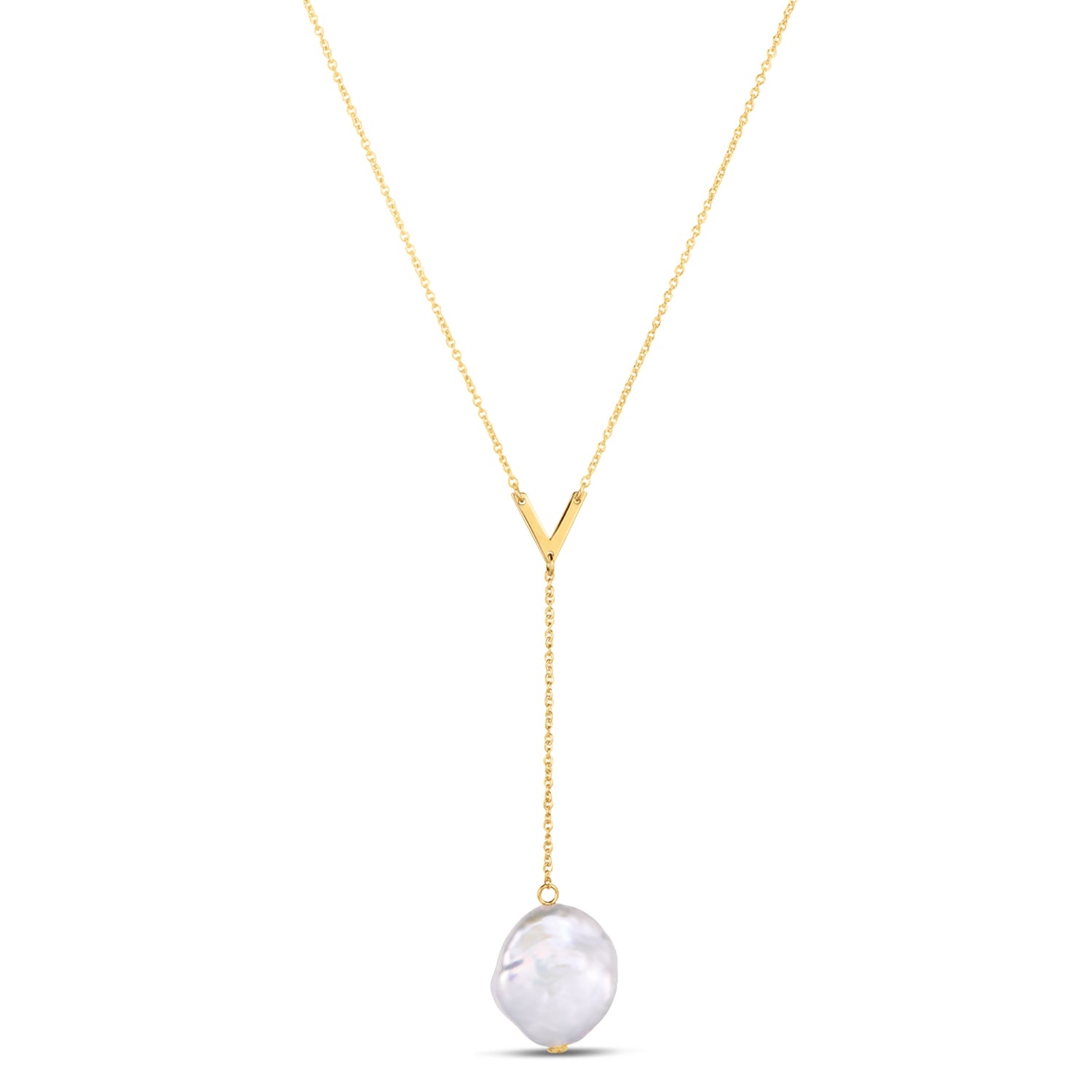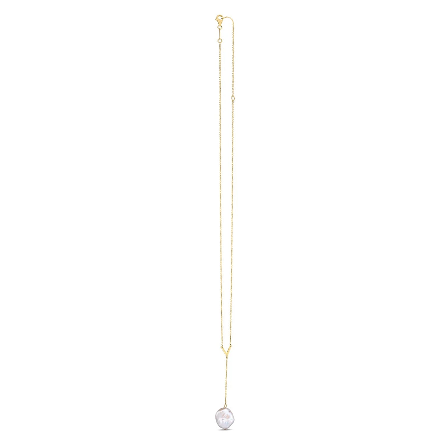 Tesoro Dangling Pearl Adjustable Lariat Necklace 14K Yellow Gold