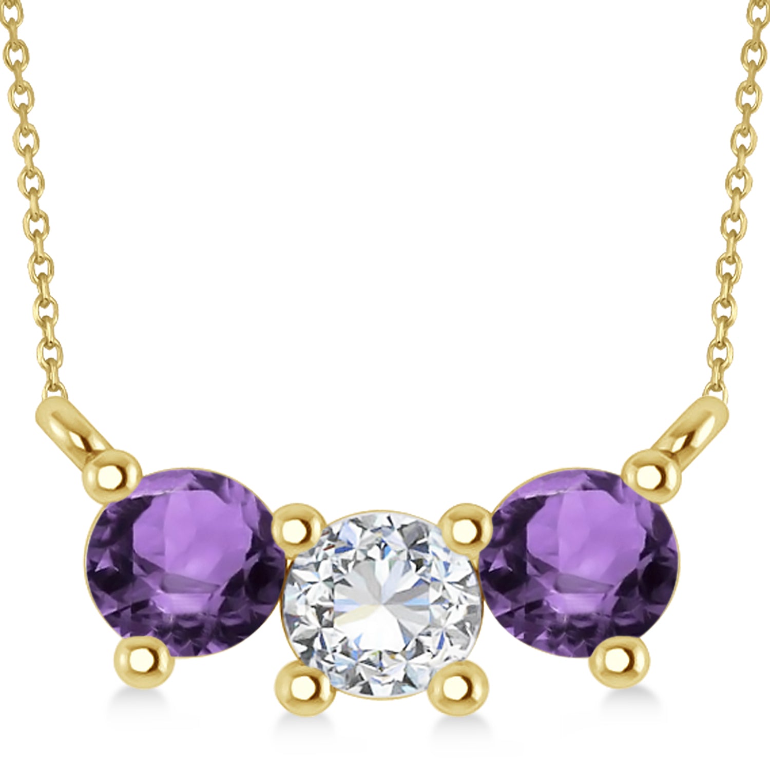 Three Stone Diamond & Amethyst Pendant Necklace 14k Yellow Gold (1.00ct)