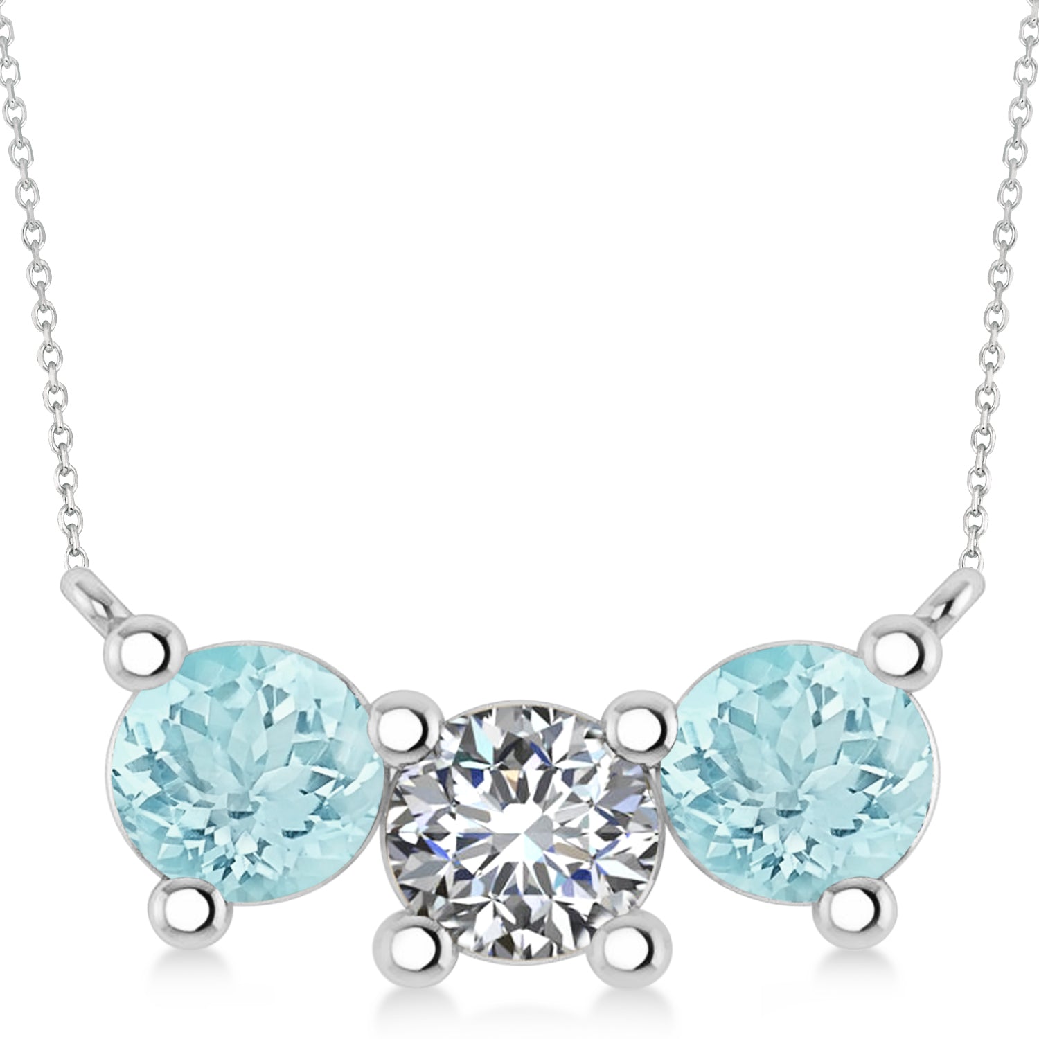 Three Stone Diamond & Aquamarine Pendant Necklace 14k White Gold (3.00ct)