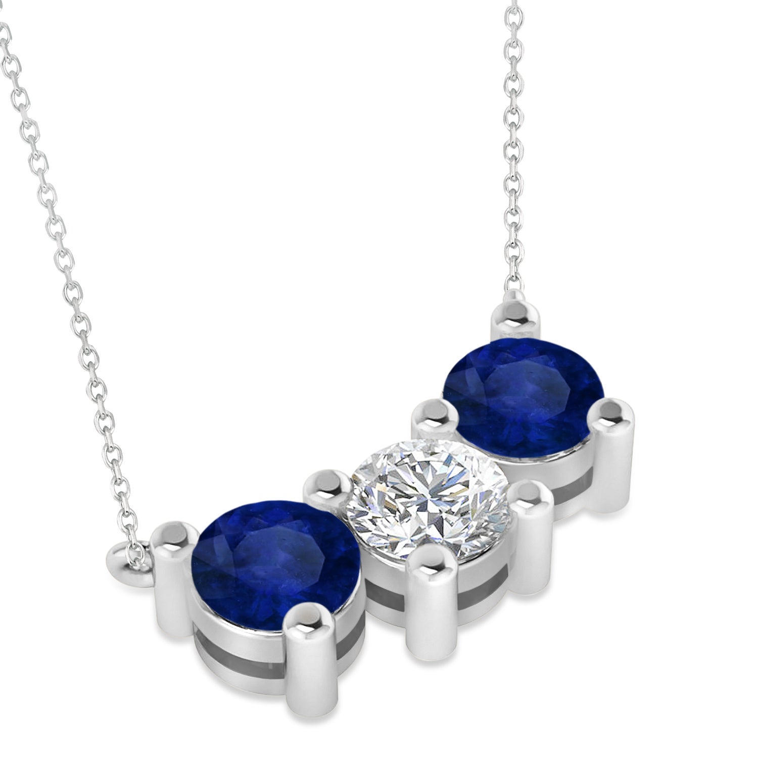 Three Stone Diamond & Blue Sapphire Pendant Necklace 14k White Gold (3.00ct)