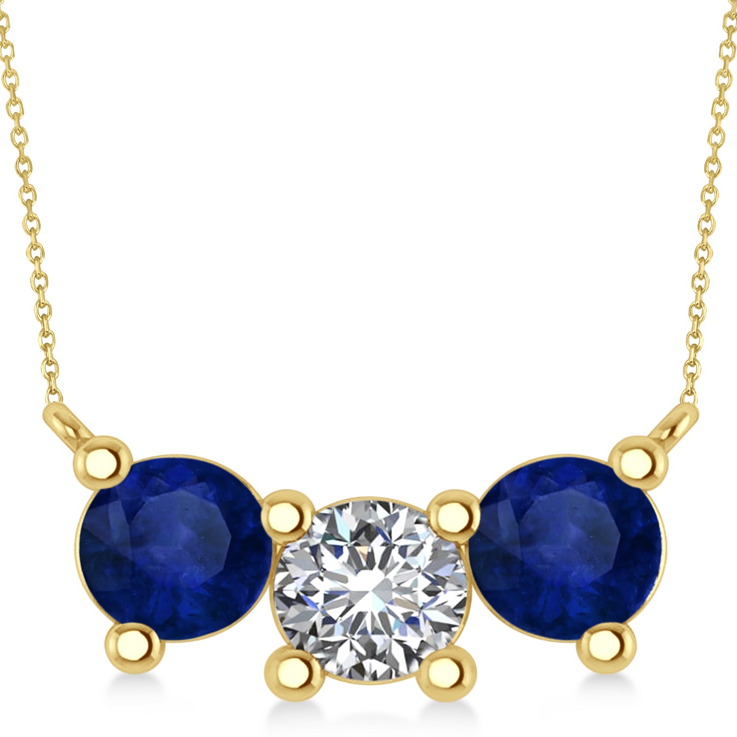 Three Stone Diamond & Blue Sapphire Pendant Necklace 14k Yellow Gold (3.00ct)