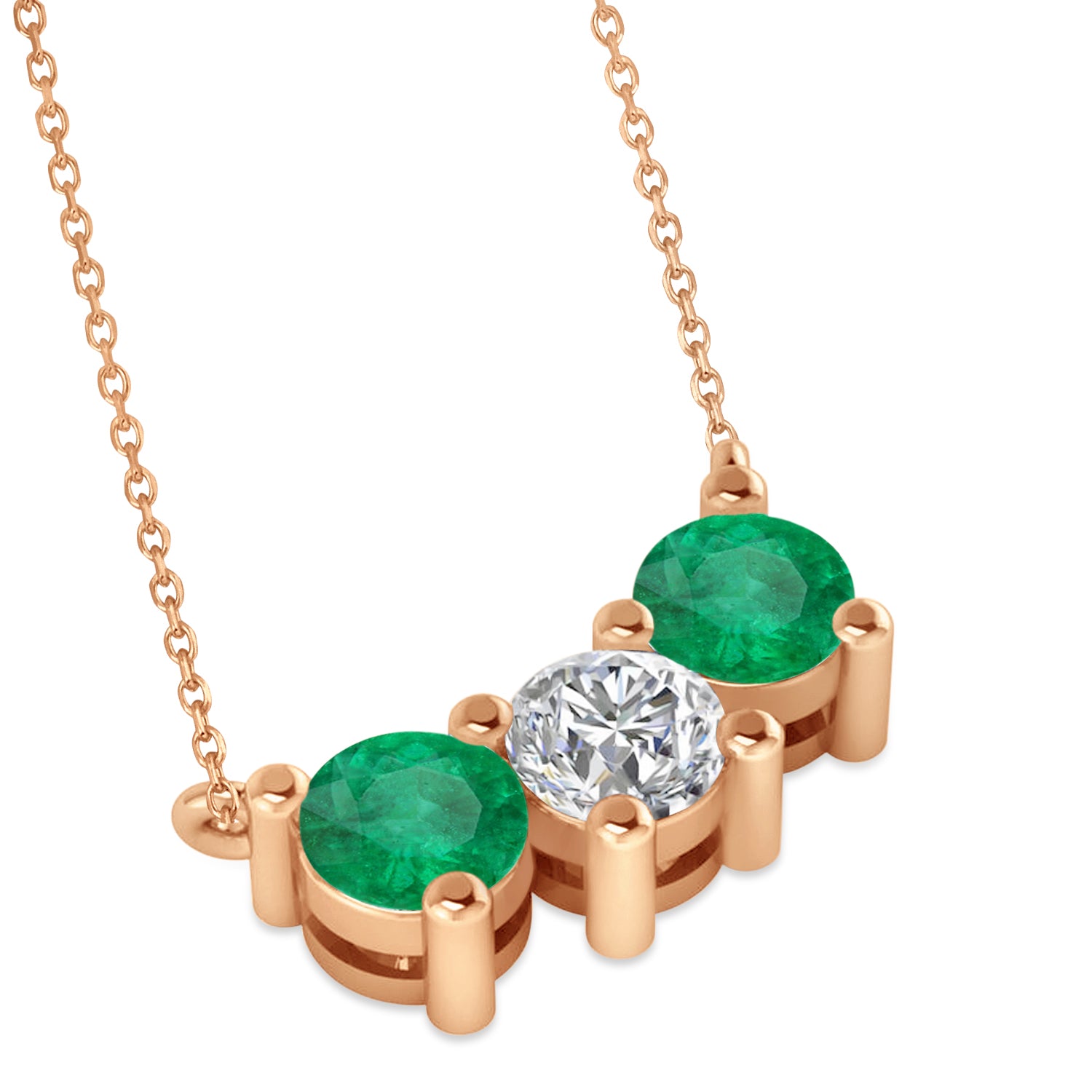 Three Stone Diamond & Emerald Pendant Necklace 14k Rose Gold (1.50ct)