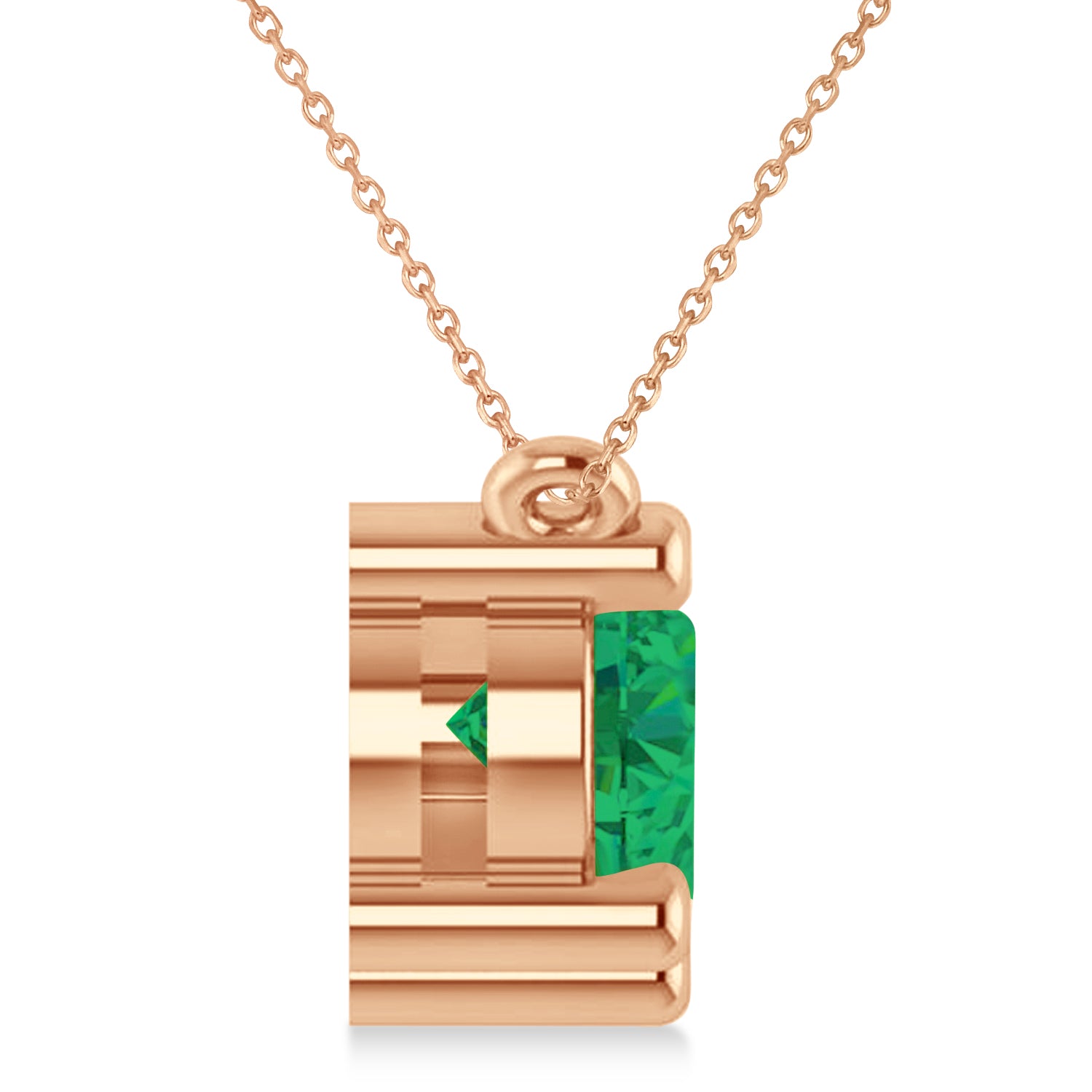 Three Stone Diamond & Emerald Pendant Necklace 14k Rose Gold (3.00ct)