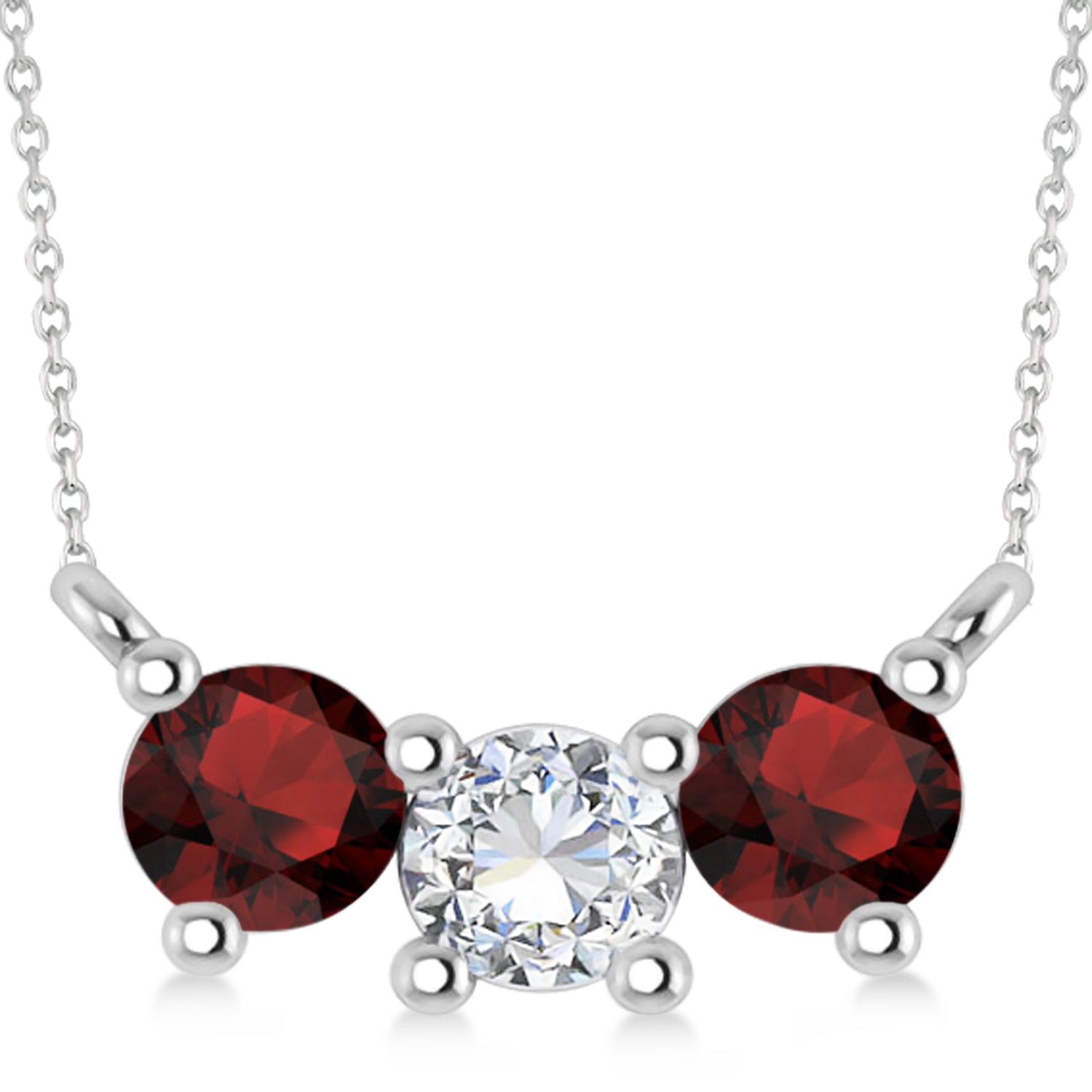 Three Stone Diamond & Garnet Pendant Necklace 14k White Gold (1.00ct)