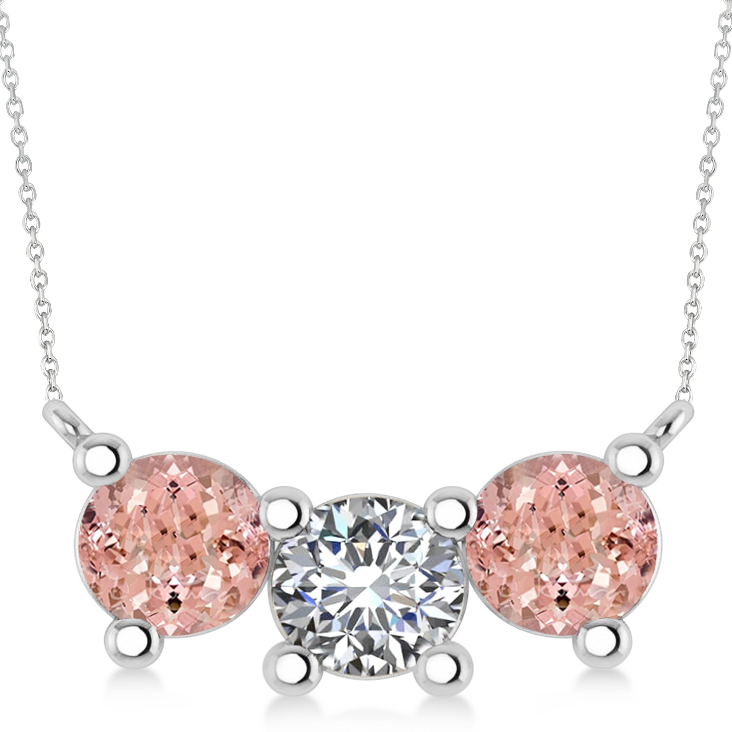 Three Stone Diamond & Morganite Pendant Necklace 14k White Gold (3.00ct)