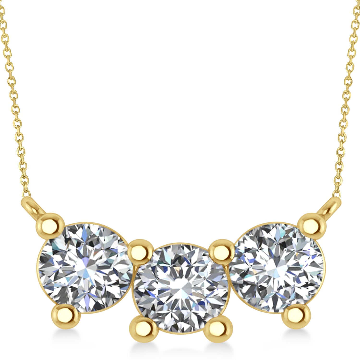 Three Stone Diamond Pendant Necklace 14k Yellow Gold (3.00ct)