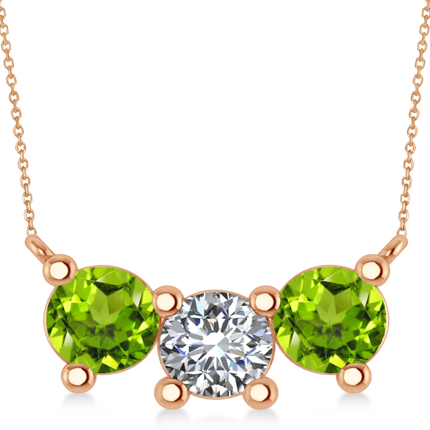 Three Stone Diamond & Peridot Pendant Necklace 14k Rose Gold (3.00ct)