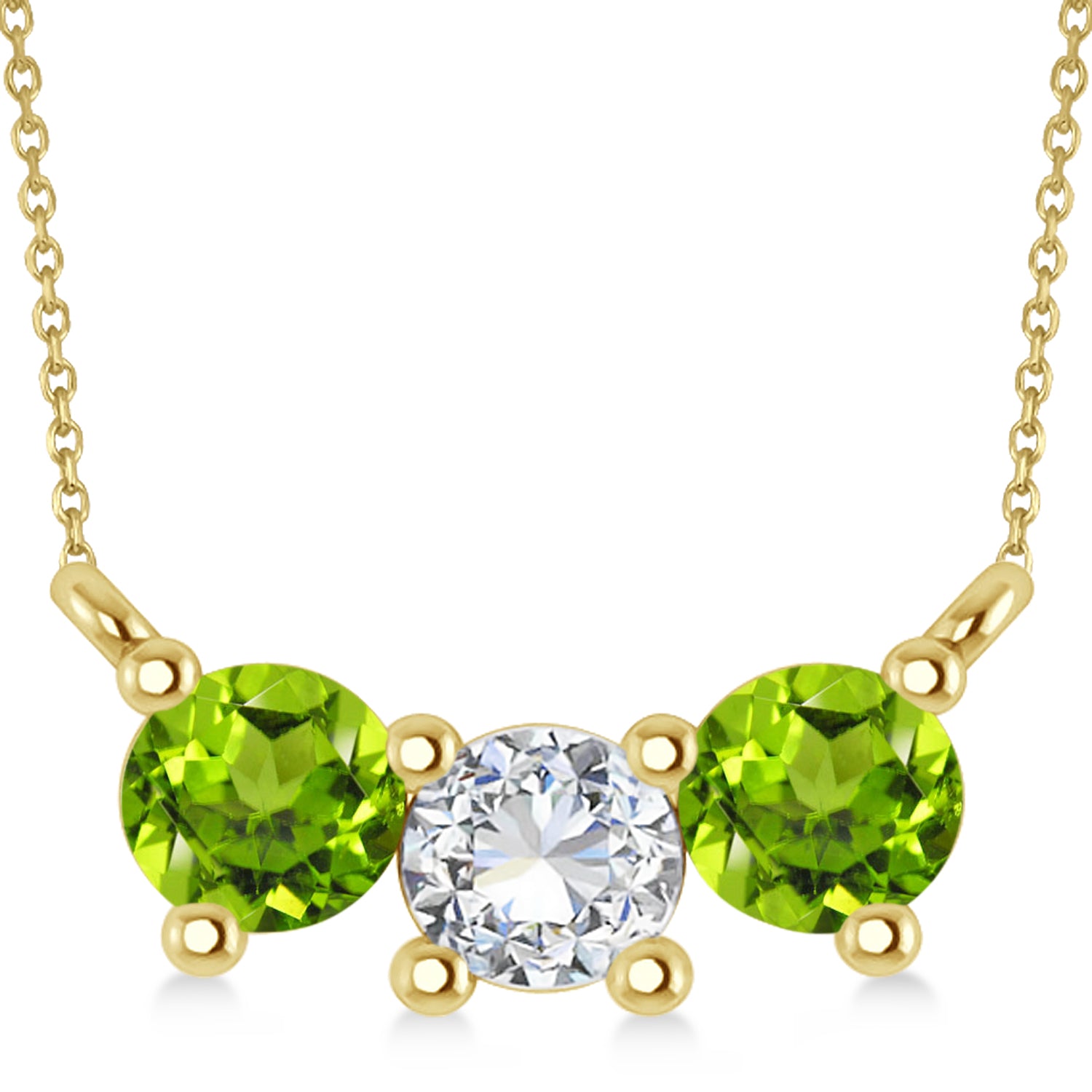 Three Stone Diamond & Peridot Pendant Necklace 14k Yellow Gold (1.00ct)