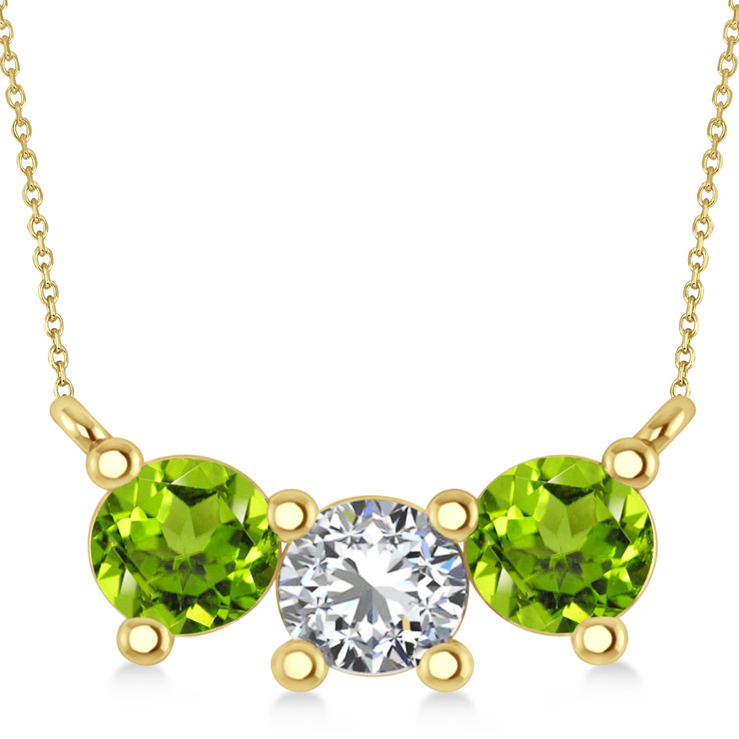 Three Stone Diamond & Peridot Pendant Necklace 14k Yellow Gold (1.50ct)