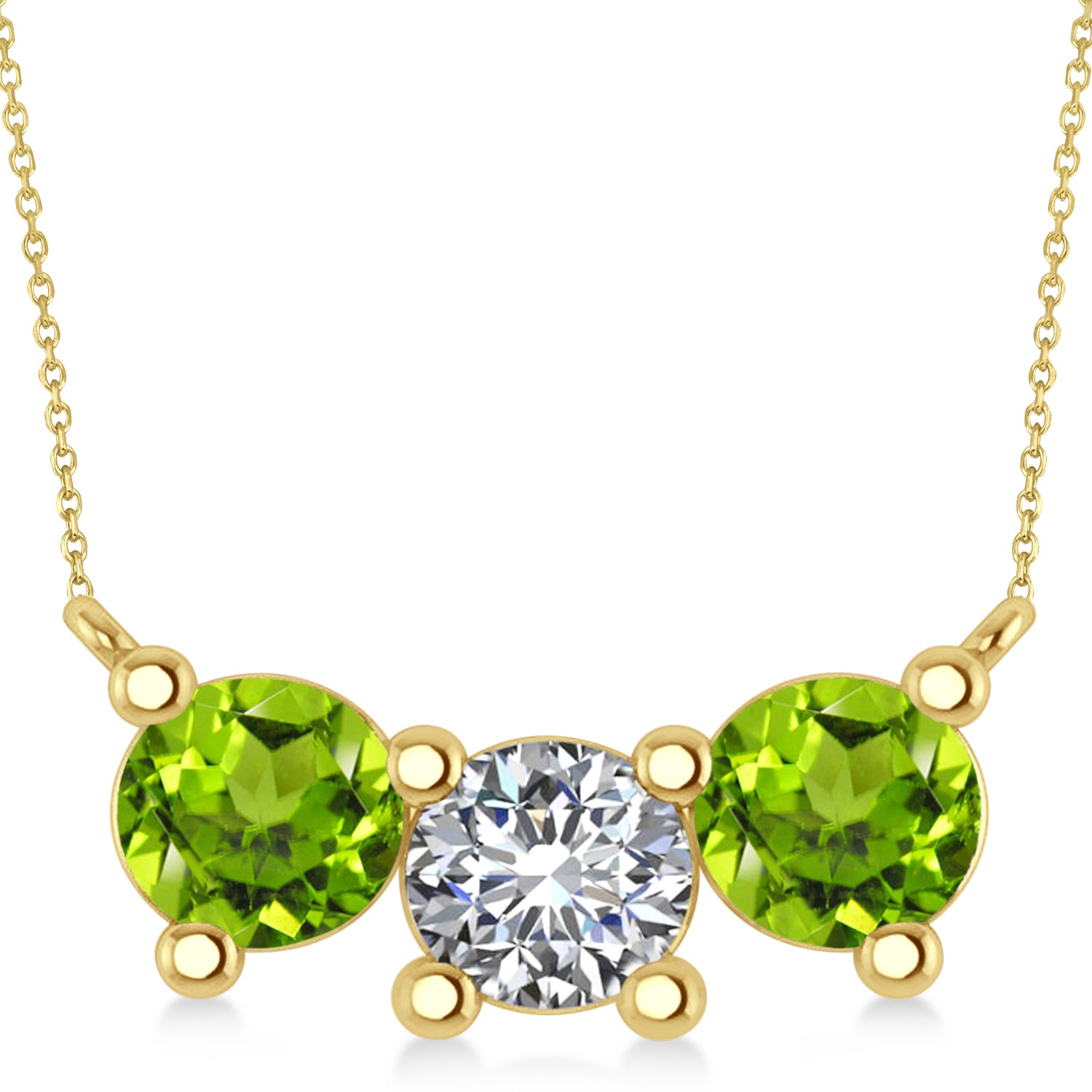 Three Stone Diamond & Peridot Pendant Necklace 14k Yellow Gold (3.00ct)