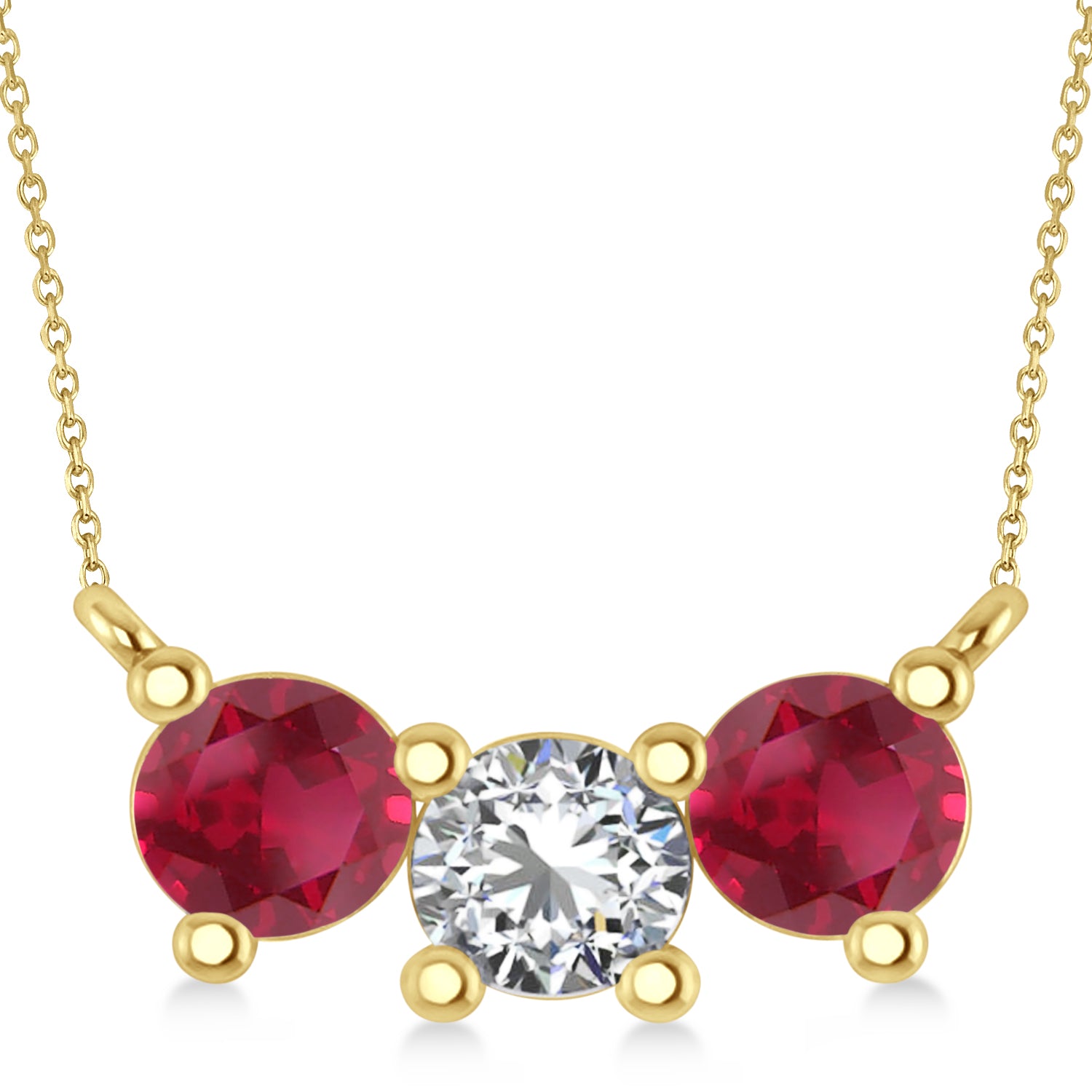 Three Stone Diamond & Ruby Pendant Necklace 14k Yellow Gold (1.50ct)