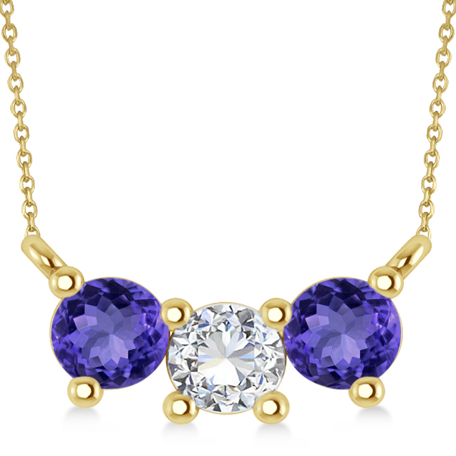 Three Stone Diamond & Tanzanite Pendant Necklace 14k Yellow Gold (1.00ct)