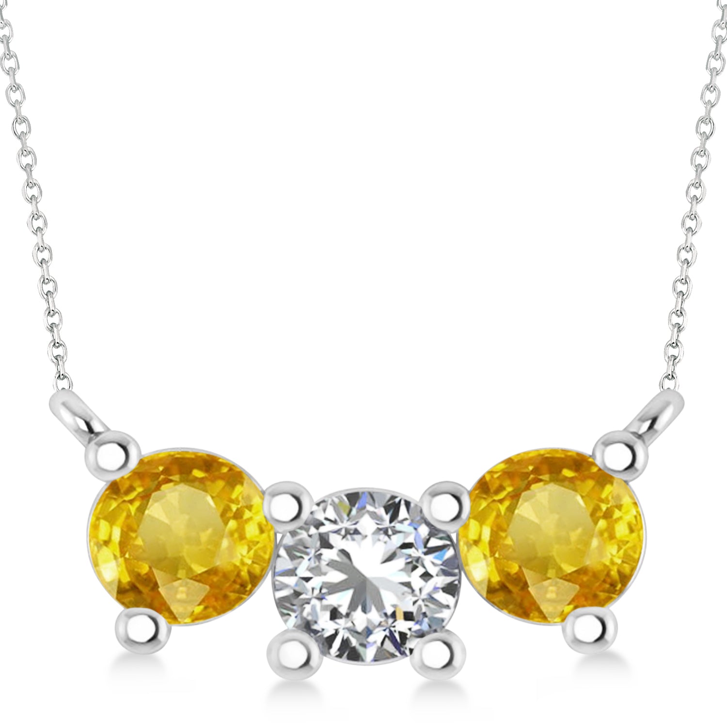 Three Stone Diamond & Yellow Sapphire Pendant Necklace 14k White Gold (1.50ct)