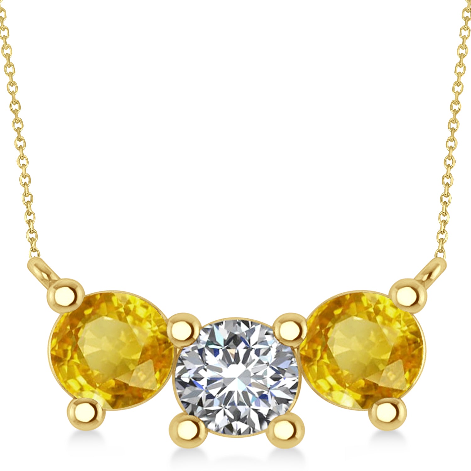 Three Stone Diamond & Yellow Sapphire Pendant Necklace 14k Yellow Gold (3.00ct)