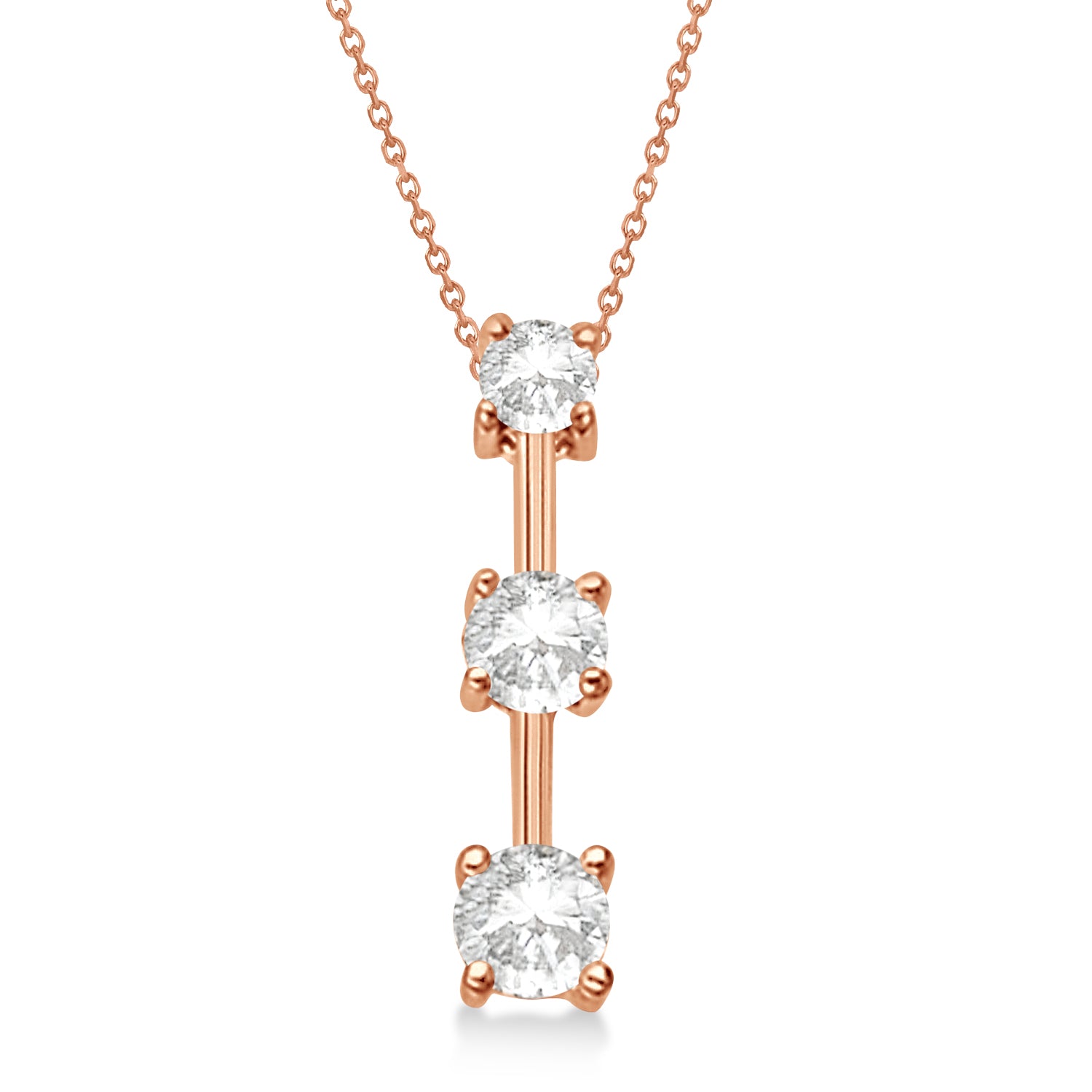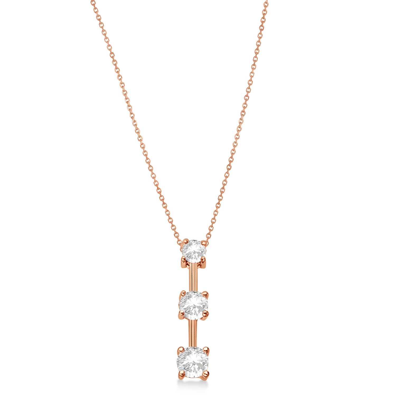 Three-Stone Graduated Diamond Pendant Necklace 14k Rose Gold (1.00ct)