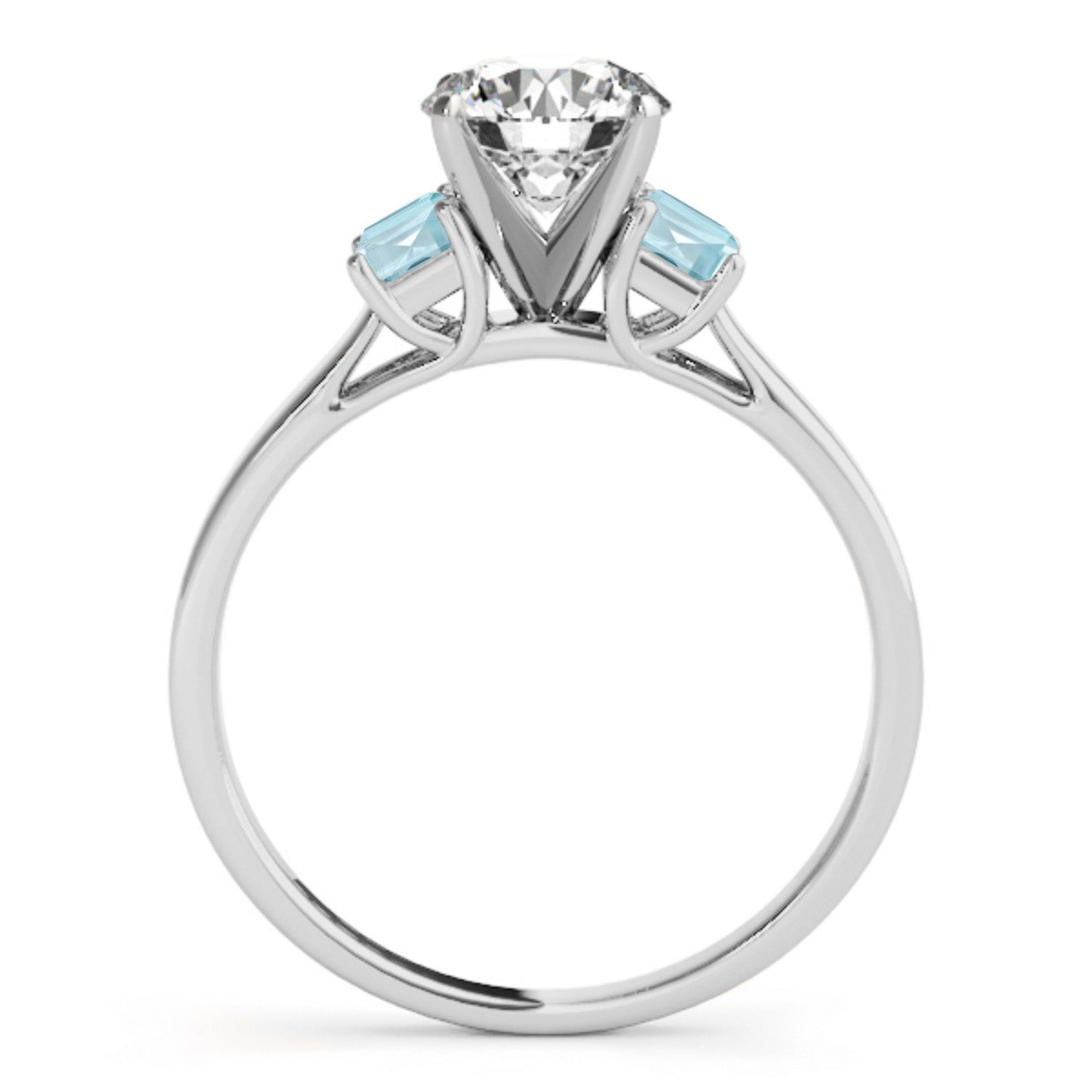 Trio Emerald Cut Aquamarine Engagement Ring 18k White Gold (0.30ct)