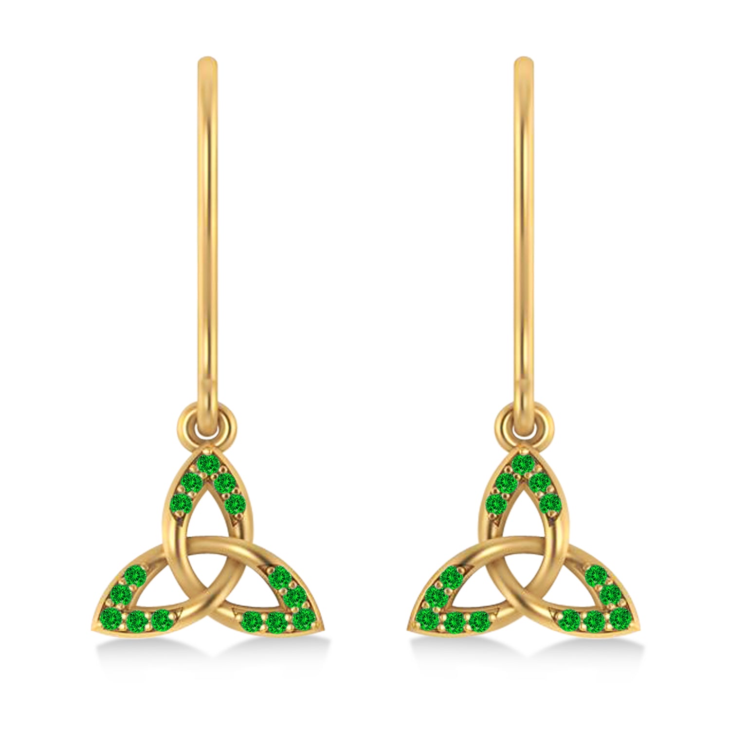 Tsavorite Celtic Knot Dangle Earrings 14k Yellow Gold (0.15ct)