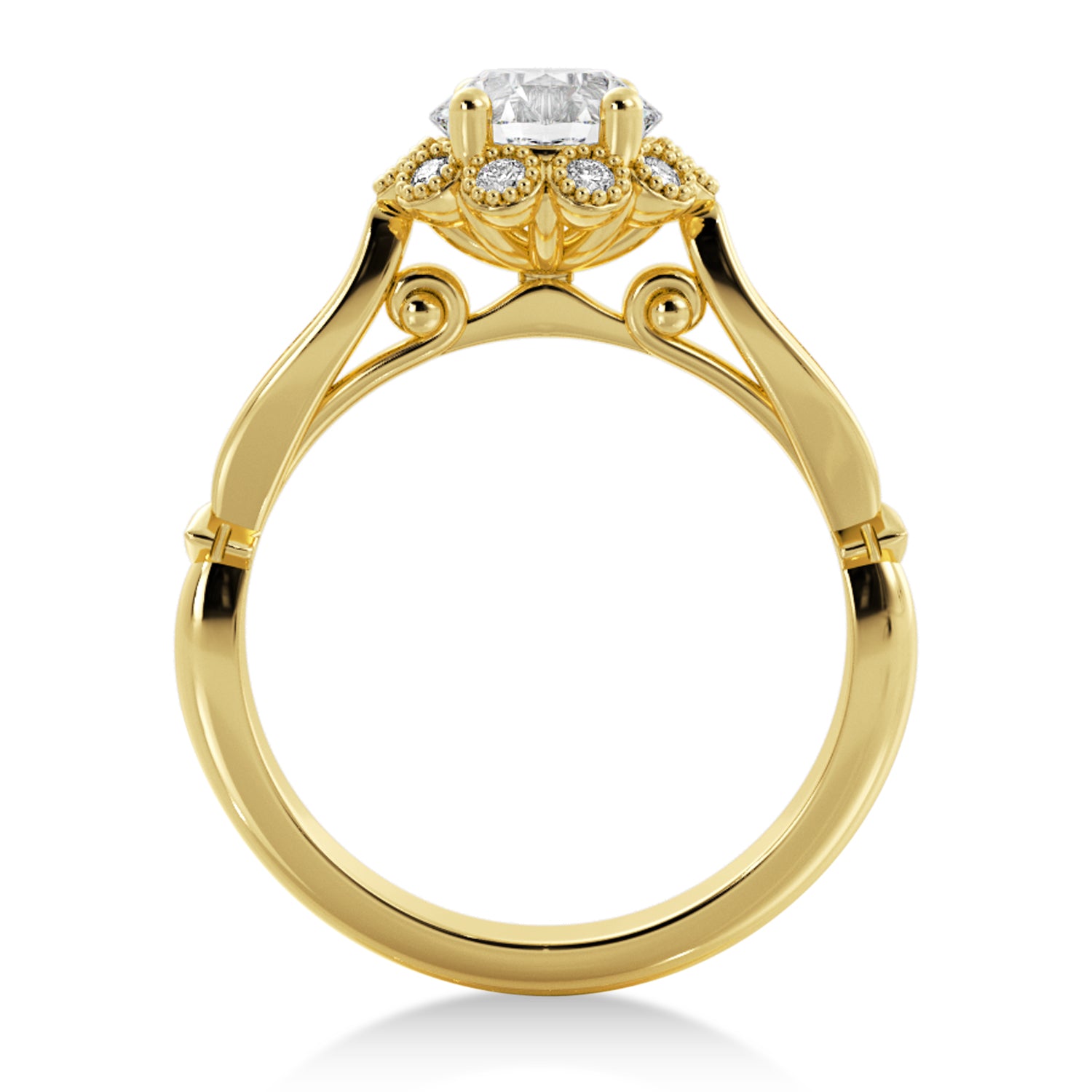 This beautiful floral engagement ring is designed with a halo setting to hold a center stone of any carat, cut, clarity and color. Choose the stone that is the best fit for your future fianc?e in this unique ring setting.