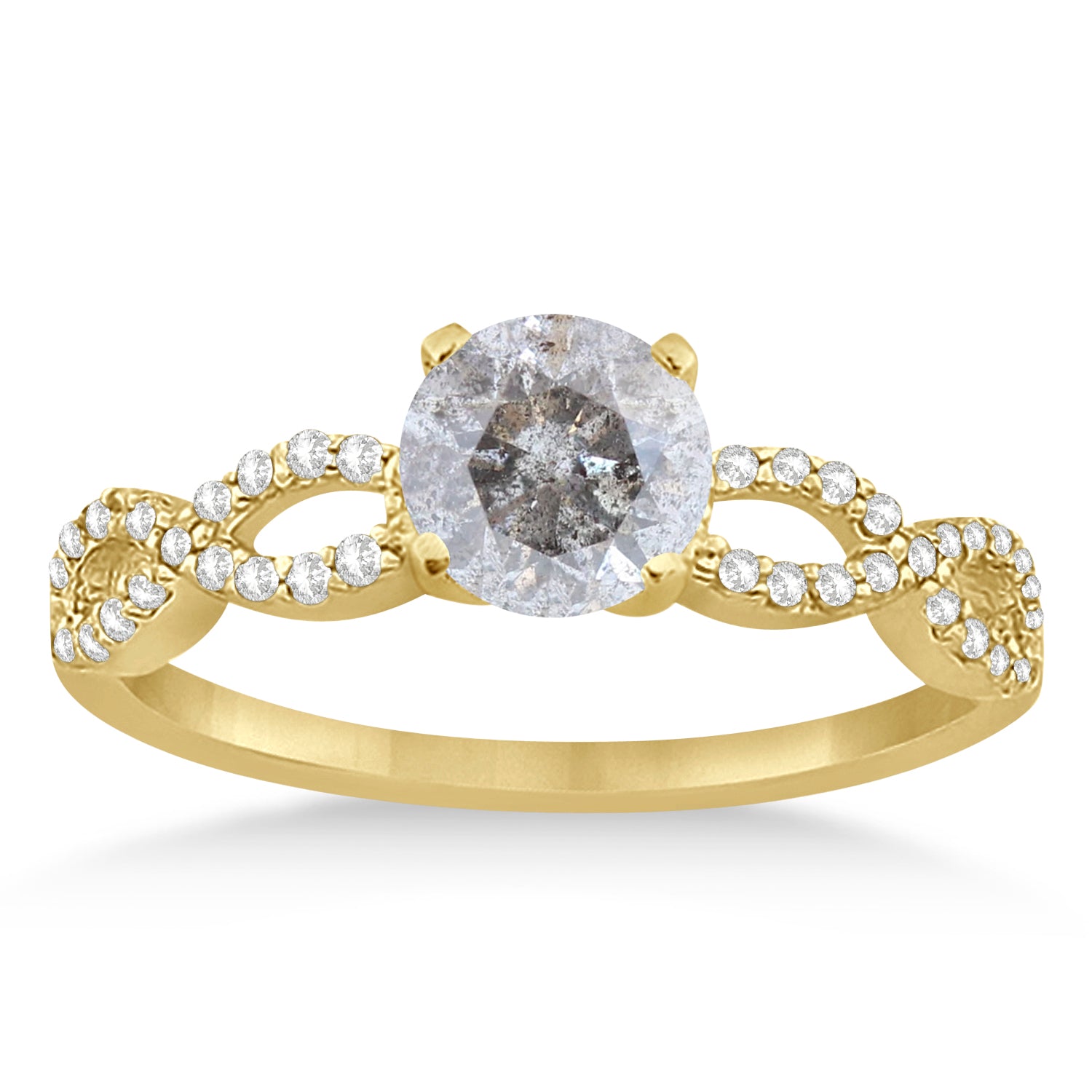 Twisted Infinity Round Salt & Pepper Diamond Engagement Ring 14k Yello