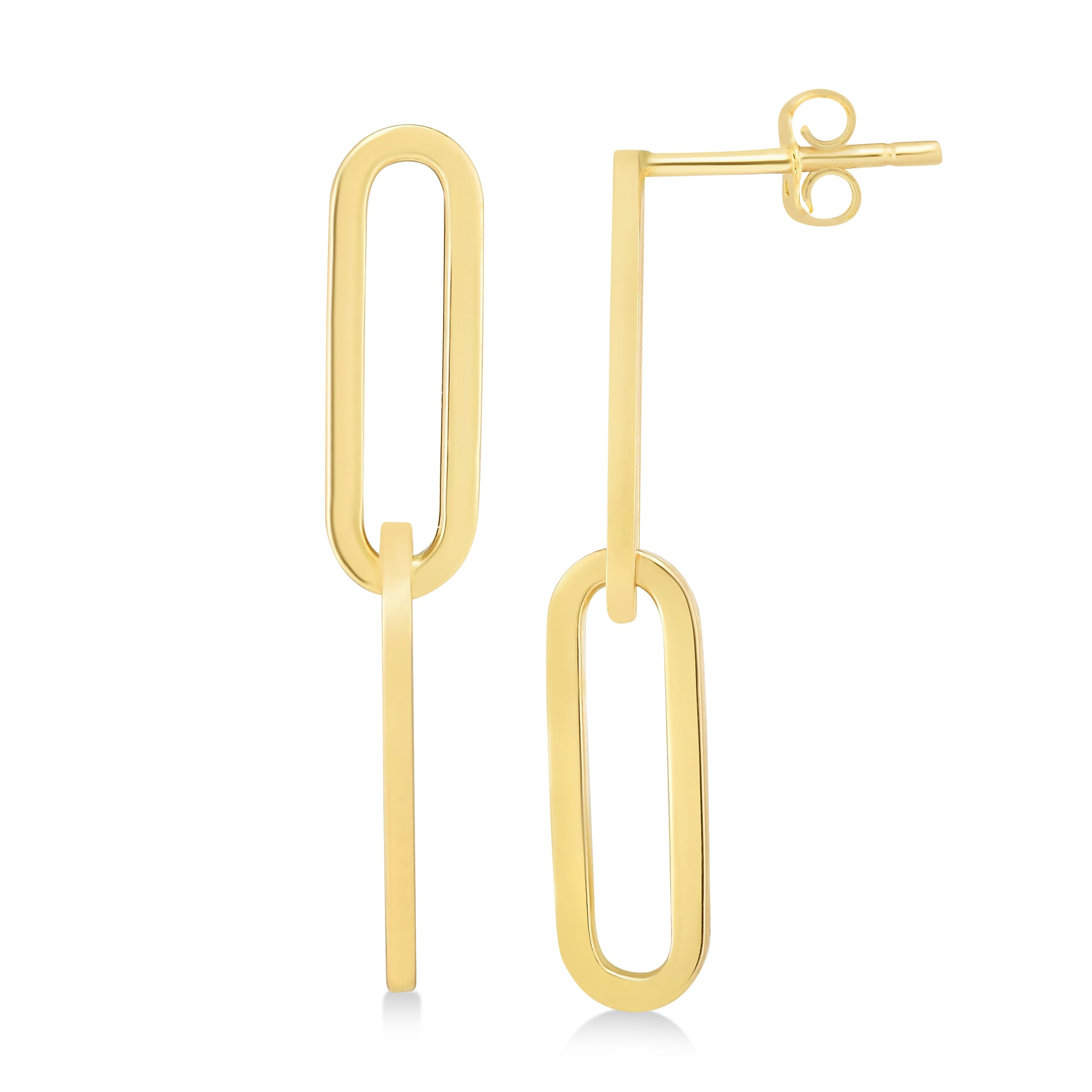 Two Link Chain Paperclip Drop Earrings 14k Yellow Gold