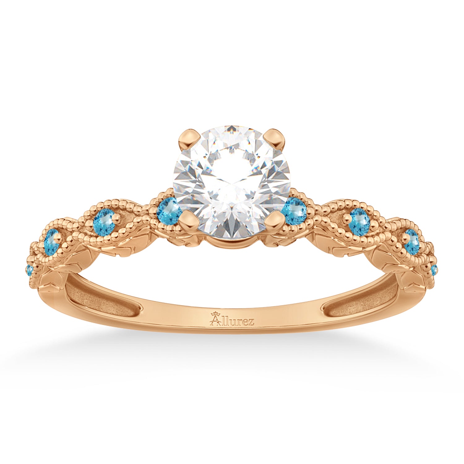 Vintage Marquise Blue Topaz Engagement Ring 18k Rose Gold (0.18ct)