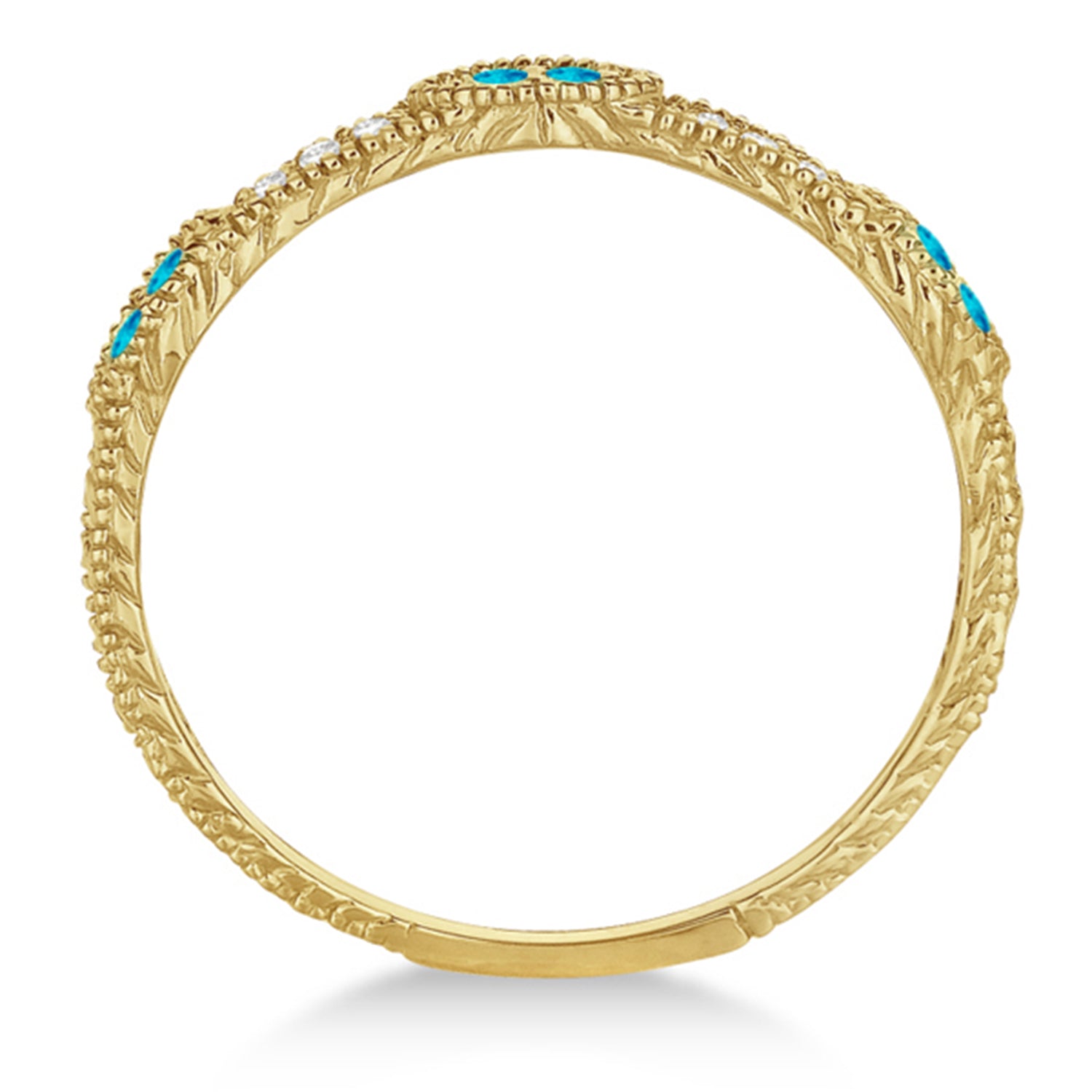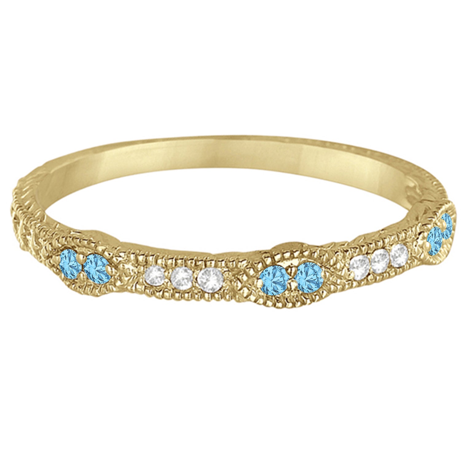 Vintage Stacking Diamond & Blue Topaz Ring Band 14k Yellow Gold (0.15ct)