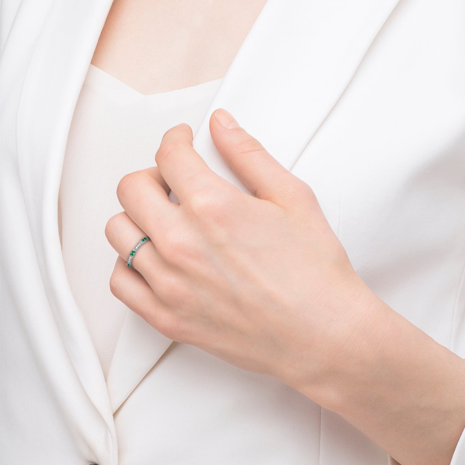 A band with 6 brilliant cut round diamonds alternating with 6 genuine emerald gemstones going...