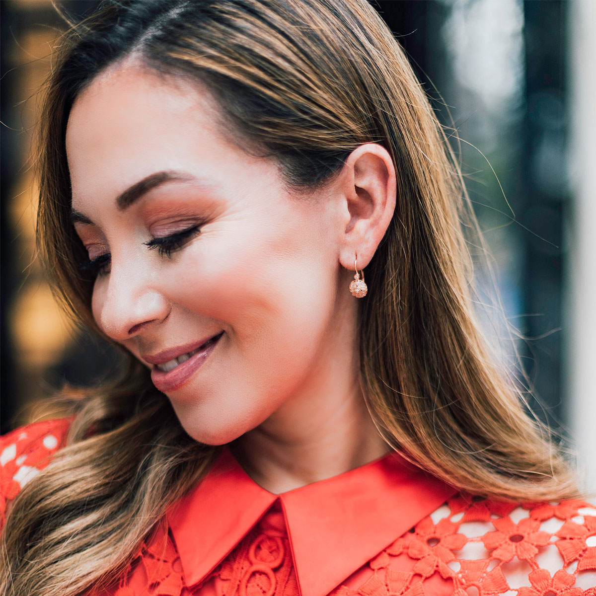 These 14k rose gold flower designed earrings feature stunning diamond accents, creating drop earrings that will quickly become her favorite diamond earrings .