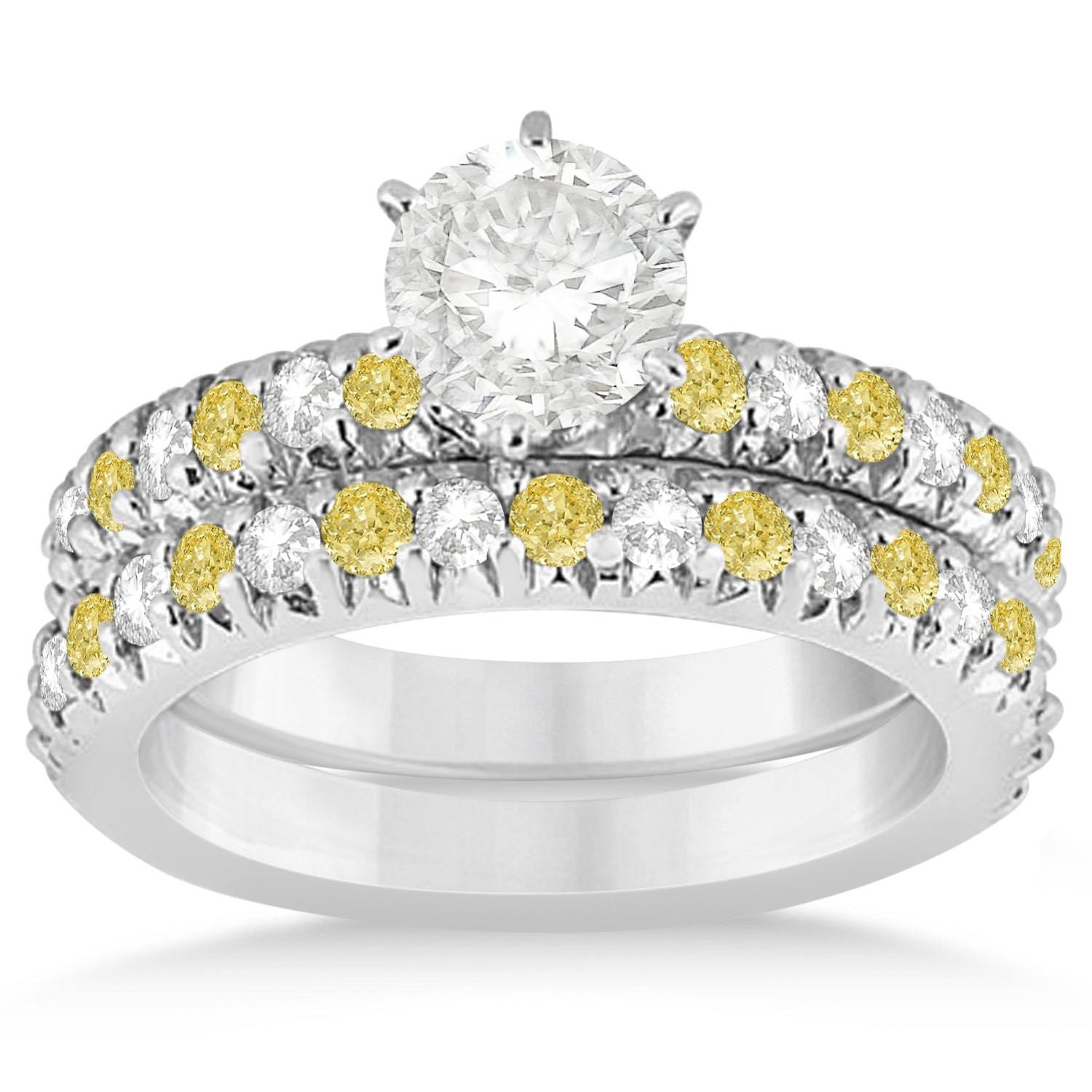 Yellow Diamond & Diamond Bridal Set Setting 18k White Gold 1.14ct
