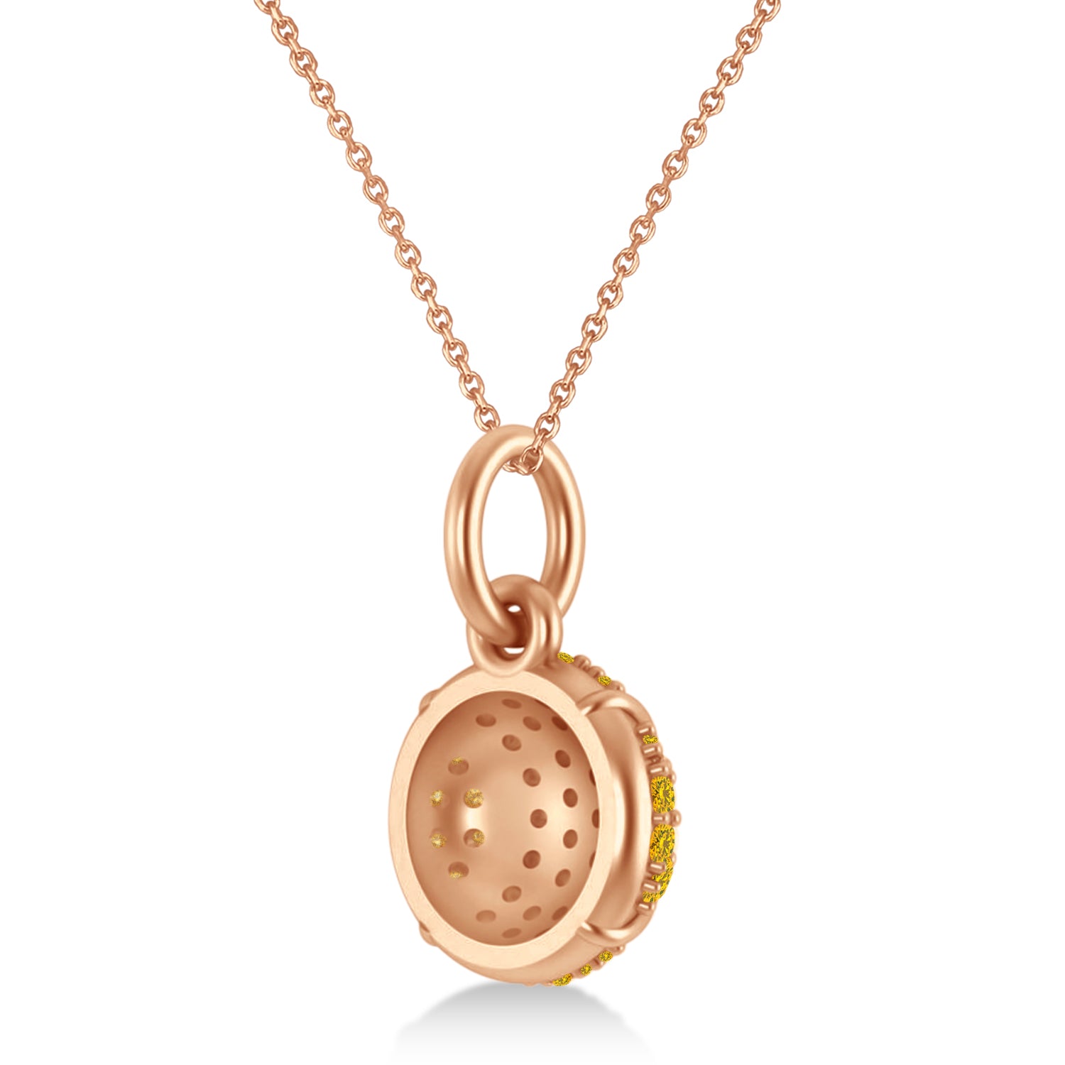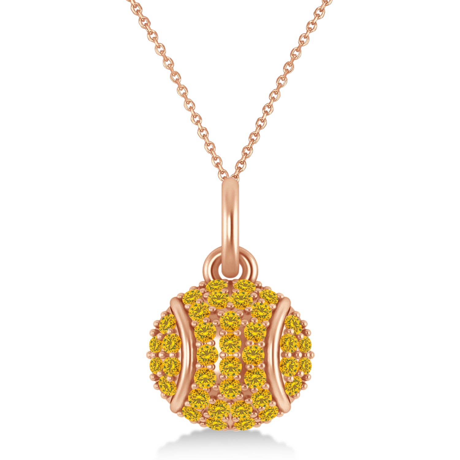 Yellow Sapphire Tennis Ball Charm Pendant Necklace 14K Rose Gold (0.42ct)