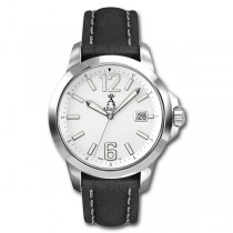 This classic design men's diver watch from Allurez features an attractive combination of stainless steel construction for the case and authentic black leather for the strap. It features a screw-down diver crown, a rotating date display, luminous hands & dial, and a dial push-button release deployment buckle.